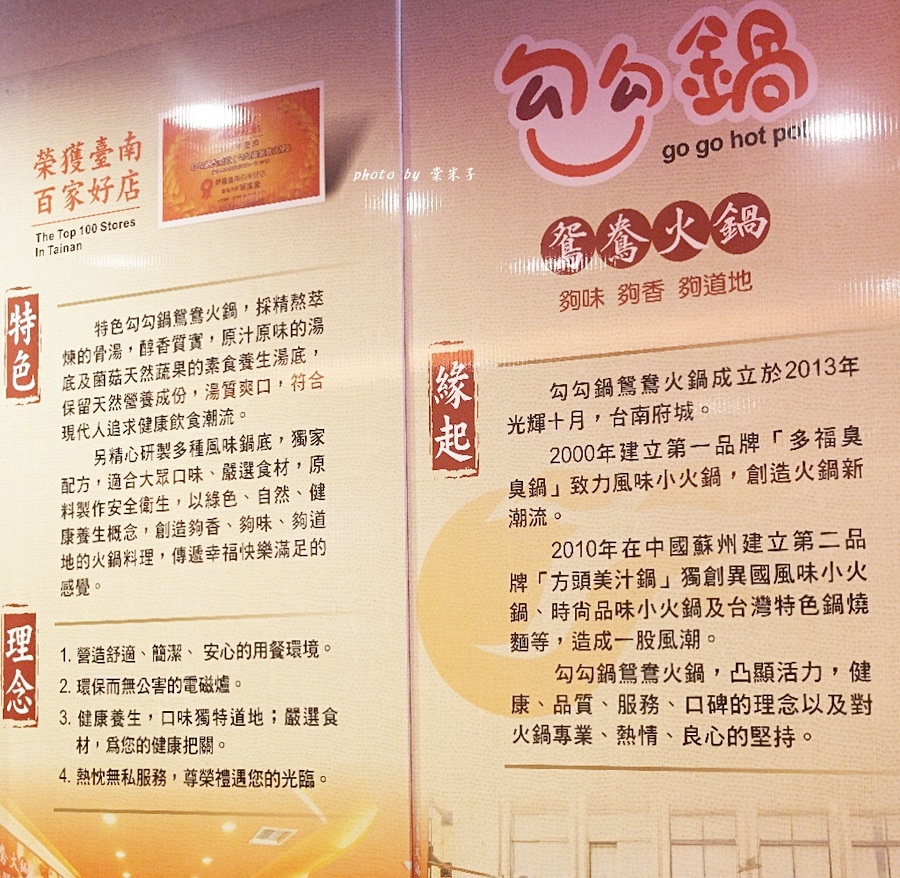 店的牆面上可以看到這家"勾勾鍋"的成立之始是在2年前,