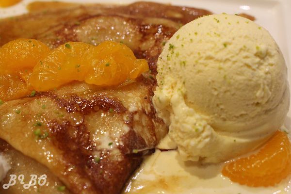 飲品先上,但鹹薄餅吃完有一段時間後橙香火焰才送來