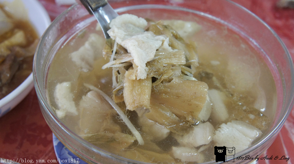 薑絲大腸,這道是客家菜常見的料理,九湖莊的薑絲大腸炒的很入味,要趁熱吃才好吃唷!