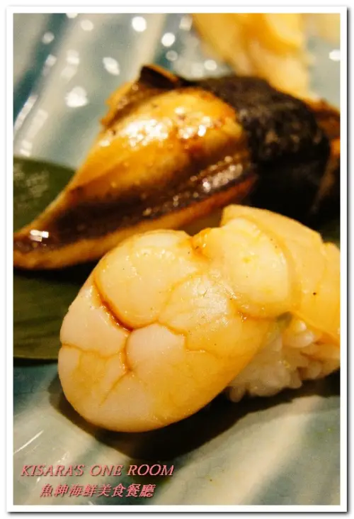 馬糞海膽、干貝、炙燒鮭魚佐松露、炙燒蝶魚