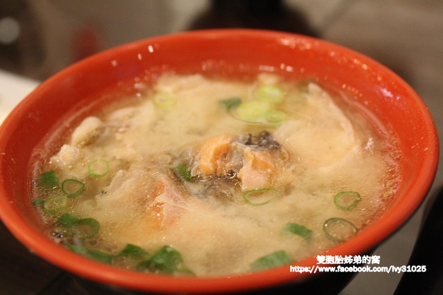 這是千曲川壽司的湯品 - 鮭魚下巴味增湯,光看端來時