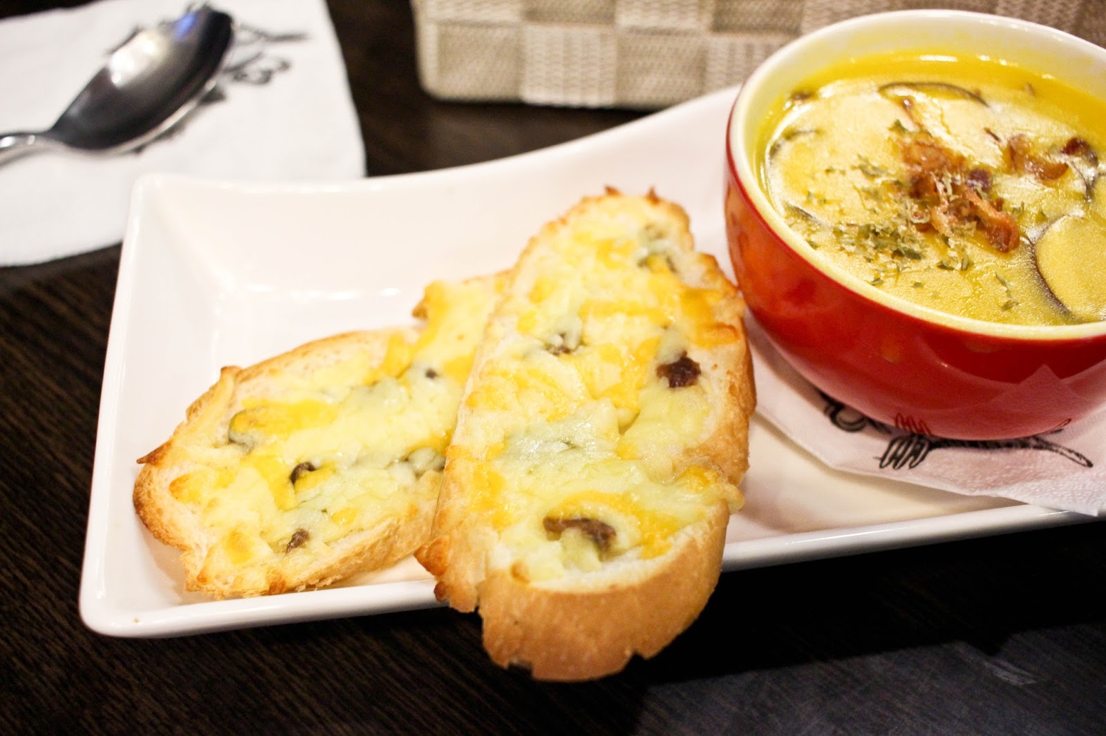 南瓜菇菇湯濃郁中帶著南瓜香氣搭配滿滿的香菇還不賴