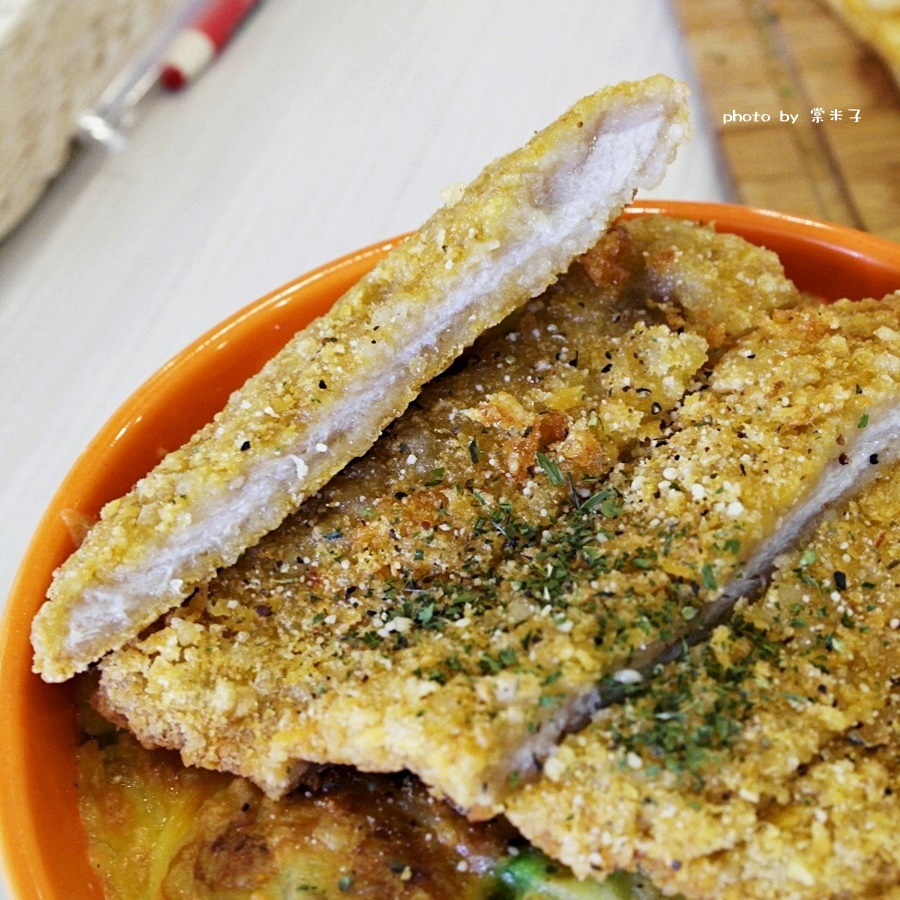 香香酥酥的豬排咬起來脆脆的但裡面的豬肉還是軟嫩的,