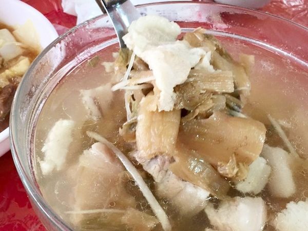 ▲福菜湯,總幹事表示福菜本來叫做「覆菜」,但因為不好聽而後來改稱作「福菜」,具有福氣感,而當下我有種長了小知識的心情