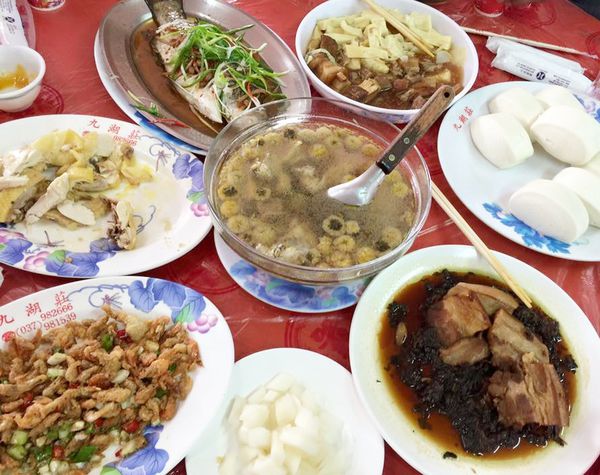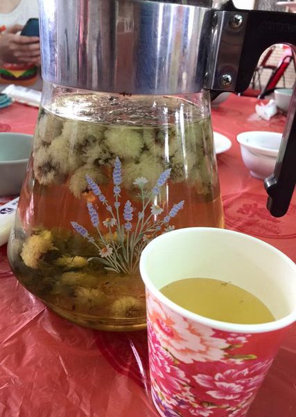 ▲方才賞了杭菊,午膳當然要應景一下喝杭菊泡的茶,不得不說和一桌大哥大姊一同喝杭菊茶有股奇妙的感覺XD