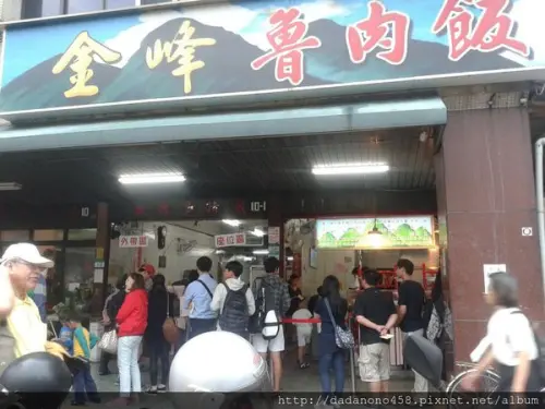金峰的招牌上寫著魯肉飯與鼎邊趖。