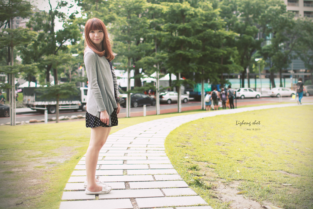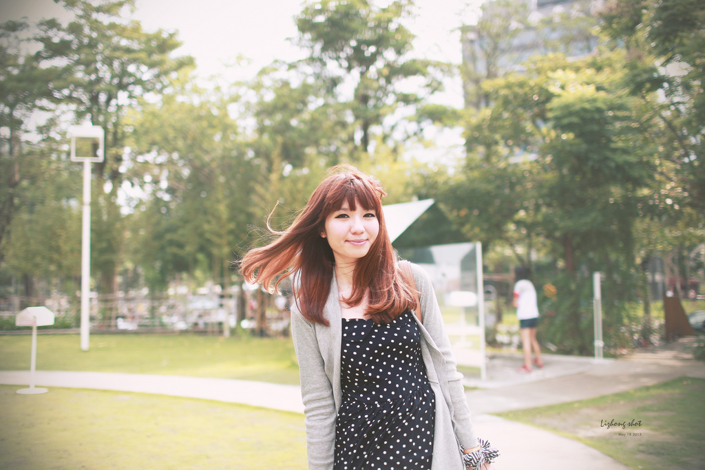 稱著還有一點時間開始在草地上亂逛,這陣風把陳美狗吹起的頭髮,大概是飛揉廣告的等級。