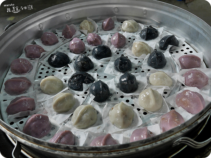 各種餡料,比較類似鹹湯圓的製作方法,不過過程是用水蒸,而非用煮的。五顏六色的客家菜包是粄仔工房利用五