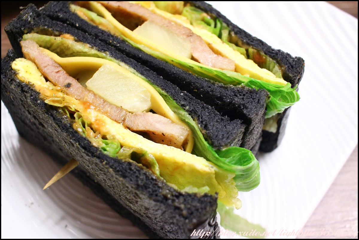 黑碳吐司是一整個對切,這是鳳梨豬里肌口味70元
