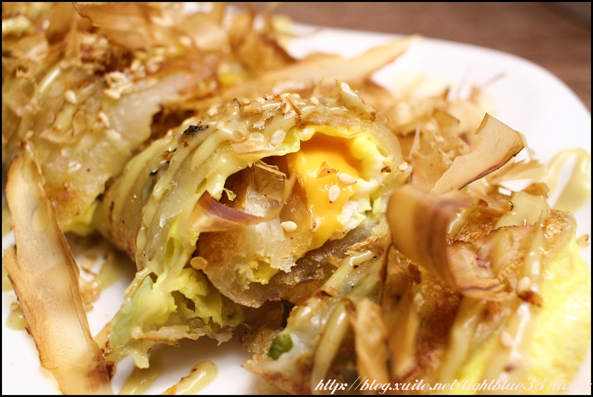 一口咬下可以吃到有滿滿三星蔥與進口起司的蔥抓餅,起司給得很多、剛上桌時很有流動感,然而卻不會過於厚重,吃起來反而有很心滿意足的感覺。變身和風的主要功臣就是柴魚片跟芥末醬,還真的頗像是大阪燒喔!
