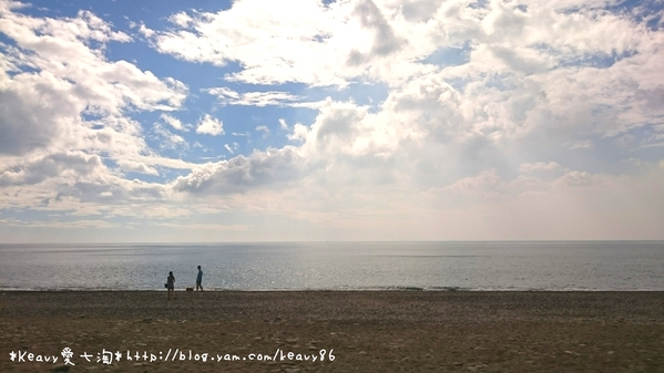 剛好看到一對情侶牽著他們養的寵物在沙灘上漫步,這個畫面,讓Keavy感覺美麗又動人。