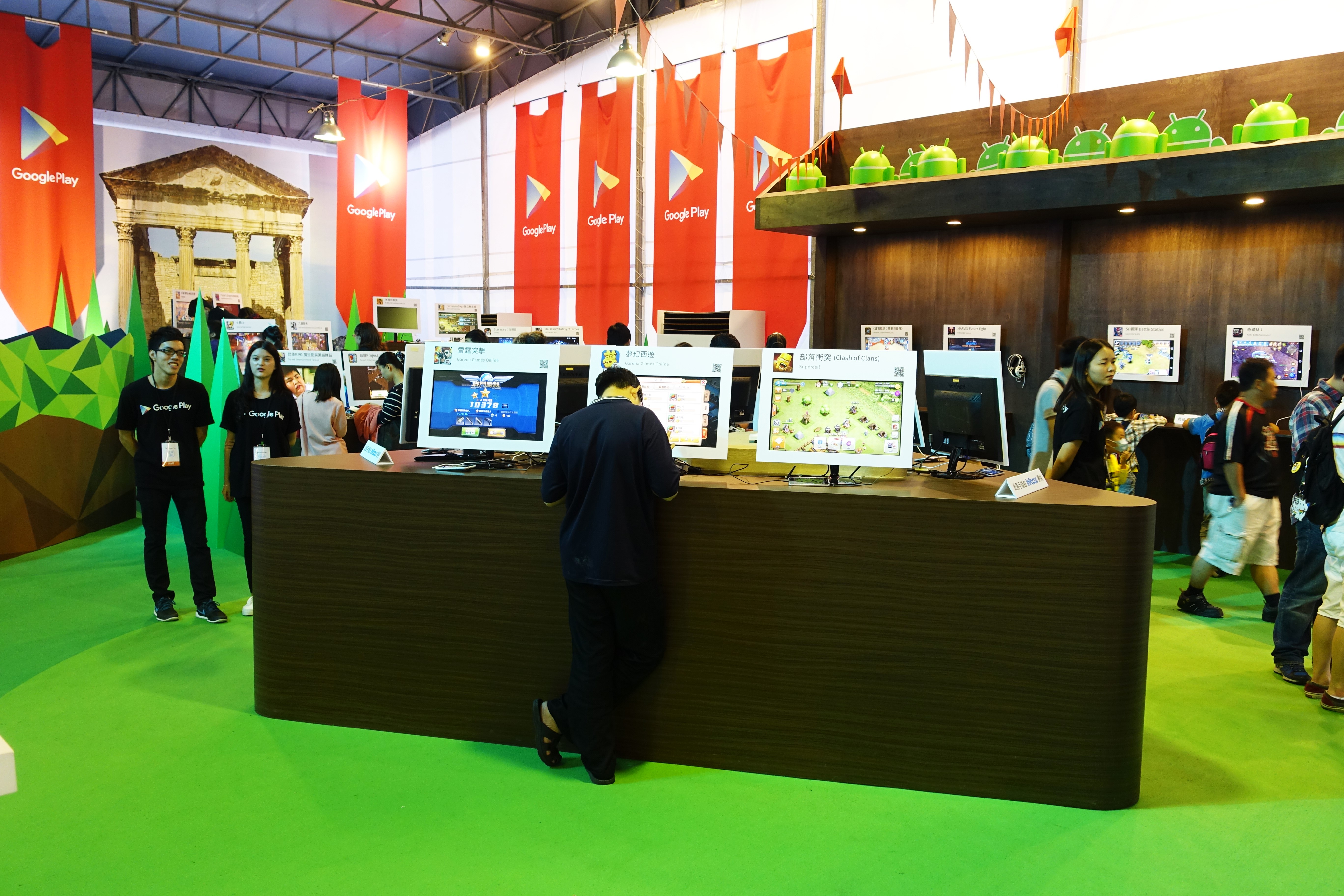 面對『特色景觀區-遊戲舞台』的右邊是『五大體驗區-玩家殿堂』,為什麼叫玩家殿堂呢,顧名思義就是許多知名RPG遊戲如部落衝突、六龍御天、雷霆突擊、夢幻西遊、列王的紛爭、魔法英雄等廣告打很兇的都在這,哥都笑稱『有錢廠商區』。