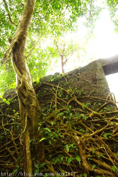 只剩下四周圍被樹根盤結的磚瓦牆,