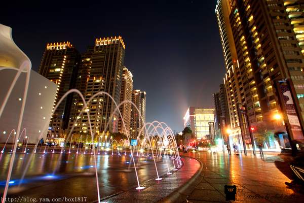 戶外空間噴泉水景於每日下午4:00、5:00、8:00、9:00、10:00進行五場10分鐘展演!