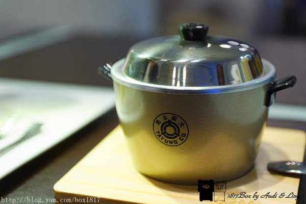 超可愛的大同電鍋裡裝著甜品,裡面是巧克力布朗尼香草冰淇淋,