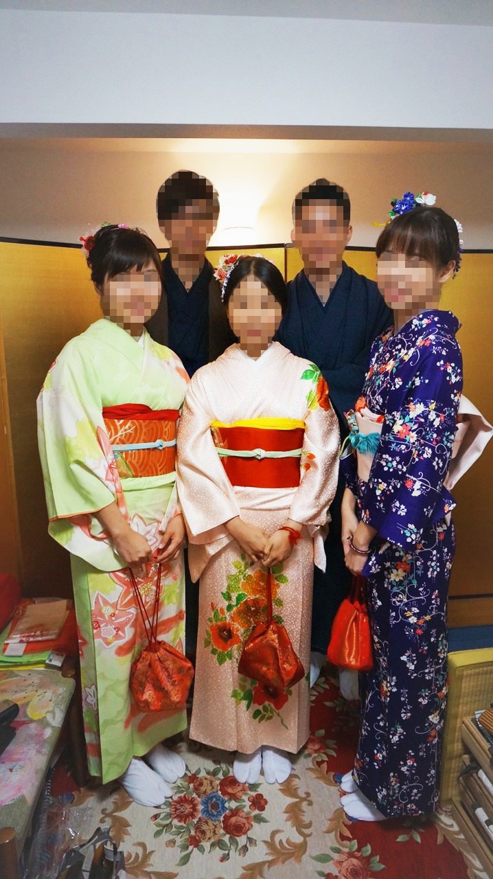我們當天5位都是預約7000日幣/AllDay,但價位還會隨著挑選的款式不同,價位也會隨之不同,像紫色和服這位朋友就是9000日幣,如果要再加振袖等,也是再額外加錢