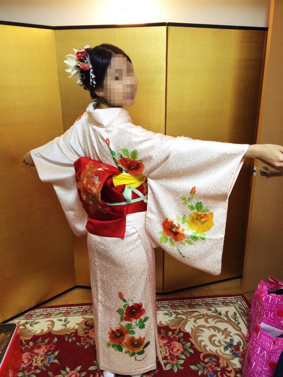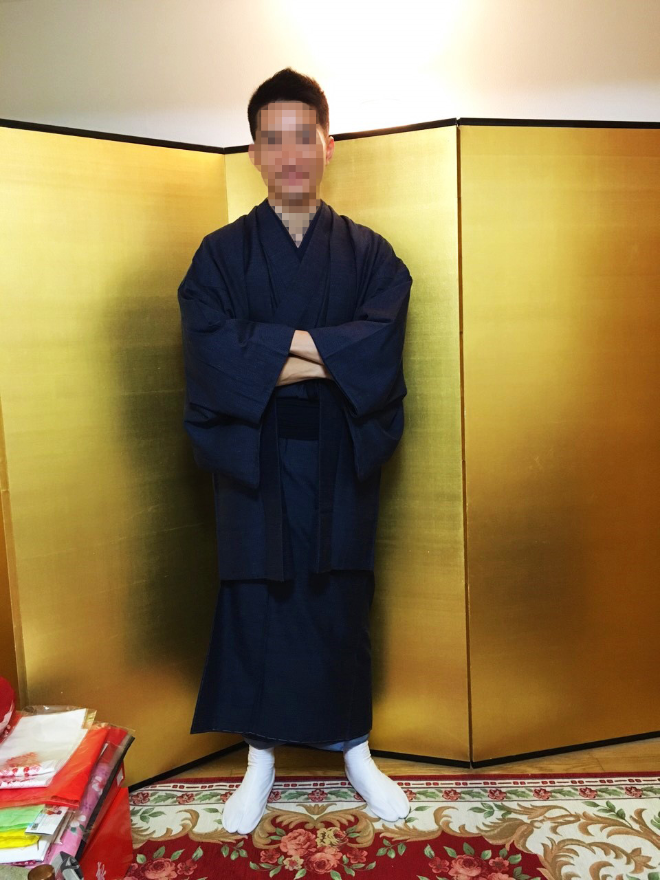 這邊要特別提一下哥的和服,下擺的那個叫『袴』,因為哥有點高導致和服穿起來有點短,婆婆覺得不好看,所以免費讓哥穿了『袴』,聽朋友說如果一般要體驗『袴』的話,要加價10000多日幣。(『袴』一般是正式場合才會穿,例如婚宴)