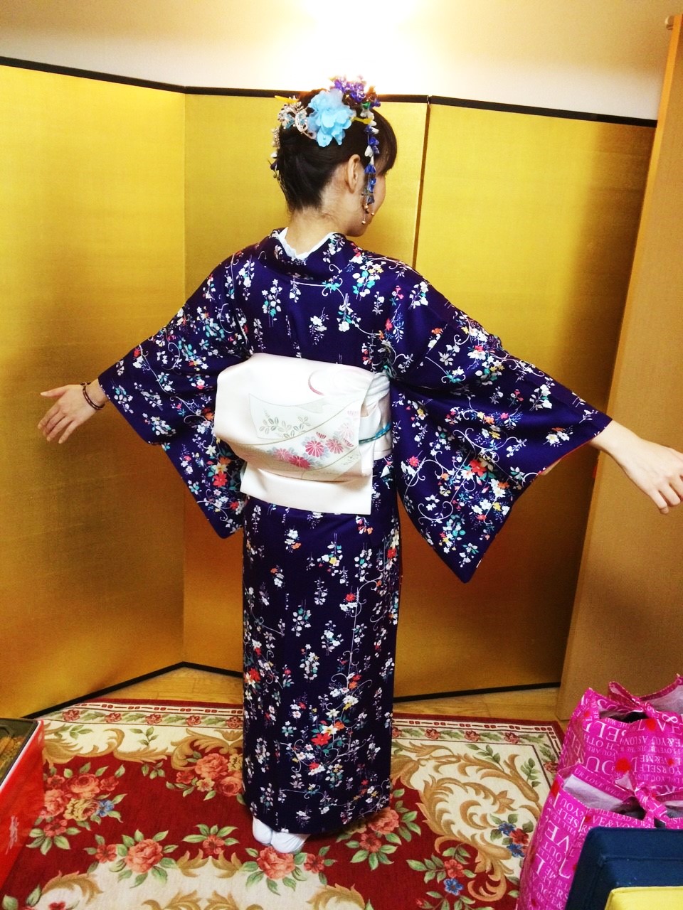 花の絵姿(花之繪姿)和服無論在質料、顏色與細緻度上都不錯,我們都覺得滿意。在費用上花の絵姿(花之繪姿)分為5500日幣/3hr與7000日幣/All Day。租一整天回來換下和服的時間是晚上六點過後,而租一整天的可能就沒辦法提早回來換掉,因為青木婆婆現在生意很好再加上只有一個人,提前回來婆婆可能還在忙另外一位客人,要等一段時間才能幫妳換下。