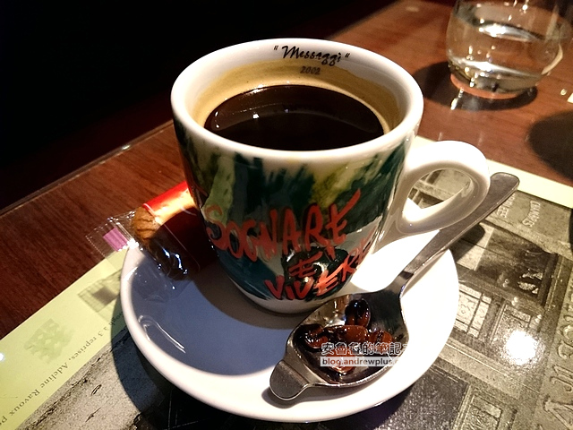 在菜單上看到這一個特別的名字,安魯魯又沒喝過,就馬上點來試試看~menu上說,這是一杯espresso 搭配用茴香酒煮過的咖啡豆,咖啡喝起來不是安魯魯印象中那種30cc,喝了會直衝腦門的那種espresso,而是比較濃一點的咖啡。茴香酒煮過的咖啡豆吃起來甜甜的,咬破咖啡豆之後,香甜微苦的味道搭配咖啡一起入口還滿特別的!