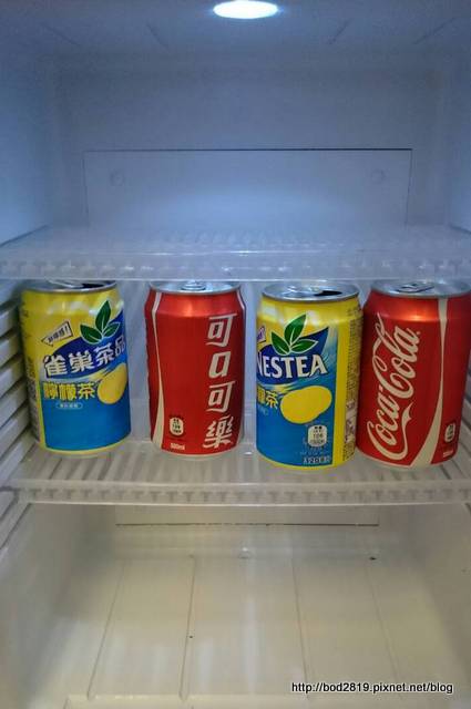 冰箱&掛衣服的地方,冰箱裏面還有四瓶飲料喔,