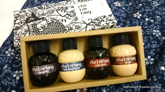 裡面有沐浴乳、洗髮精、潤髮乳以及乳液,