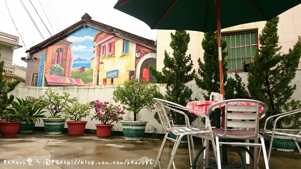 坐在壁畫旁,好像真的置身在歐洲的露天咖啡街道上喔!