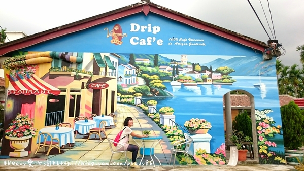 老夫子的彩繪牆旁,有一間美崙咖啡,兩面歐風立體壁畫也是電影看板畫師廖長生所繪製。