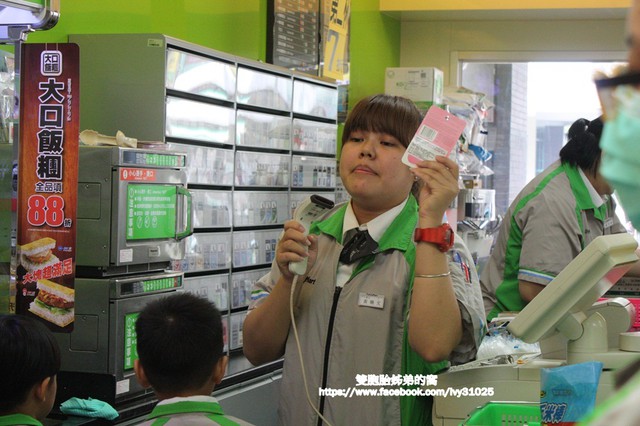第三關卡 : 結帳,全家便利商店店員姐姐跟每位小朋友解釋