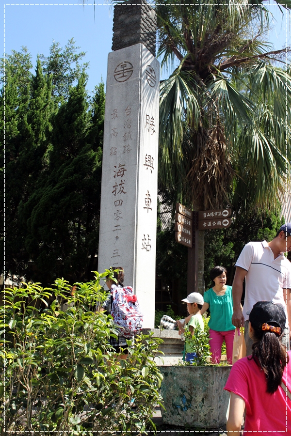 看到這標高了嗎?海拔402.3…公尺,這可是大有來頭,以前新的火車,都要來勝興車站測試,因為這個車站位居最高、這裡有最難走的徒坡(上坡和下坡),如果通這測試,就可以正式上路啦!