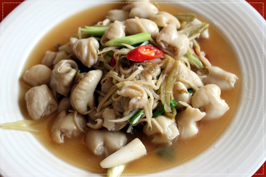 薑絲炒大腸的酸、醋、香、有嚼勁,連老人家都能輕鬆入口。苗栗客家小炒五花肉軟不乾硬、豆干紮實、魷魚大塊,食材全都充份吸收醬汁。這兩道菜都超級下飯的,讚!