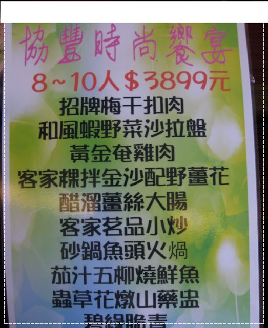 搜尋之後,再對照地圖、路線相關位置,找到一間看起來會讓人想一探究竟的餐廳:「協豐時尚饗宴」(http://www.037881303.com.tw/),這間餐廳不但有本人非常喜愛的砂鍋魚頭和苗栗客家小炒,(其實是本人有私心,直接搜尋砂鍋魚頭和苗栗客家小炒的啦!哈~哈~哈!直接找有哪間餐廳有我愛吃的美食,很聰明的方法吧!)而且,這間餐廳就在鯉魚潭水庫附近,又多了一個景點鯉魚潭水庫可以去走走,醬啷!真是太佩服我自己啦!吃飽飽後就能有個心曠神怡的地方,散散步,消化一下,讚的啦!