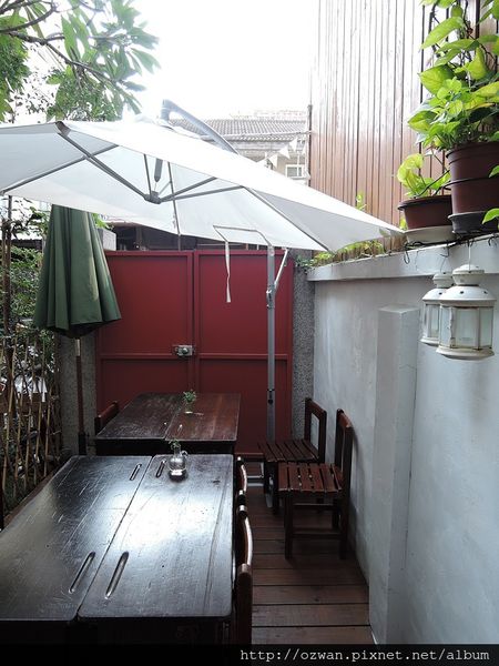 戶外庭園是熟悉的國小學童課桌椅,帶寵物來的客人可以坐這裡~