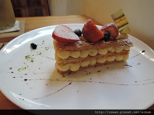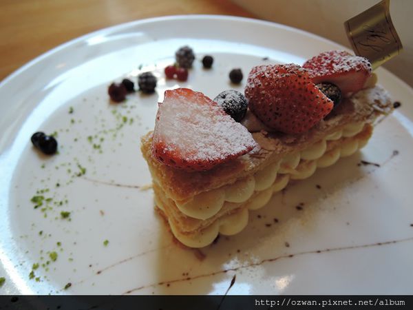 它讓我想起前陣子在咖啡瑪榭吃的千層野莓,喜歡千層的層層裝點,卻很討厭吃它,