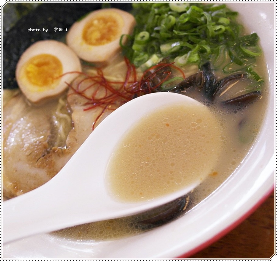 這碗"蒜味豚骨拉麵"乳白的豚骨白湯有著濃郁鮮甜美味加上濃濃蒜香,
