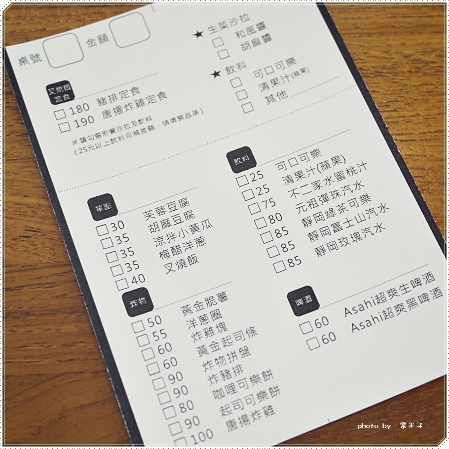 店裡的點菜單有2種,