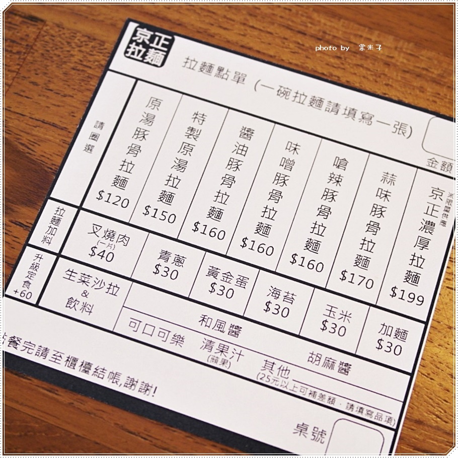 一是拉麵單子,