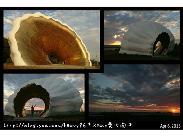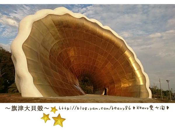 坐落於高雄旗津海岸公園鄰近貝殼館停車場南側綠地,巨大的黃金貝殼迎著海面,在夕陽餘暉映照下,猶如海上明珠,優雅的海貝造型及美妙的金色蒼穹,在夕照景色中閃亮發光,6具造型如耳的採集音器,散落在貝殼周邊,海風吹拂、浪濤拍岸,音效環繞,來自大海的海聲音,高低起伏,來回激盪,純淨悅耳。
