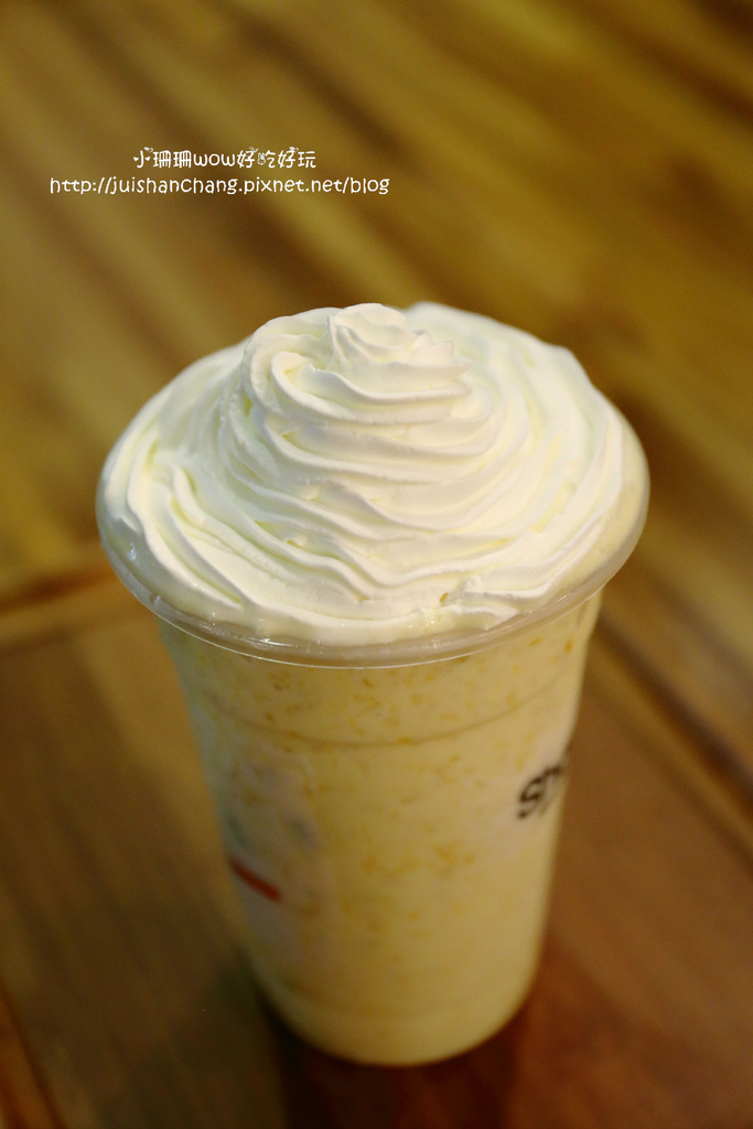 新鮮的鳳梨果泥混合奶香,口感綿密的冰沙,加上酥脆的起司餅干,酸甜不膩