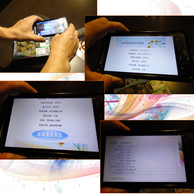 武先生還示範了產銷履歷標章的作用,用智慧型手機對著QR CODE一掃,上網追溯後就可查詢到產品的履歷資訊,連生產者從事養殖業的相關資料也都能詳細的被知道,真的是很不錯耶~難怪好事多和主婦聯盟都有販賣湧升海洋的相關產品.