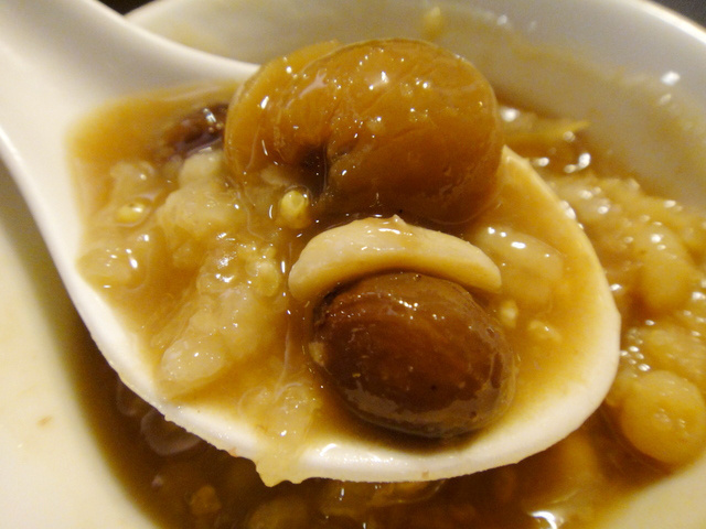 餐後甜點本來是紅豆湯,那天因為節令的關係改上臘八粥,臘八粥的口感綿軟、滑嫩,吃起來又不會過於甜膩,讓人吃了好滿足.