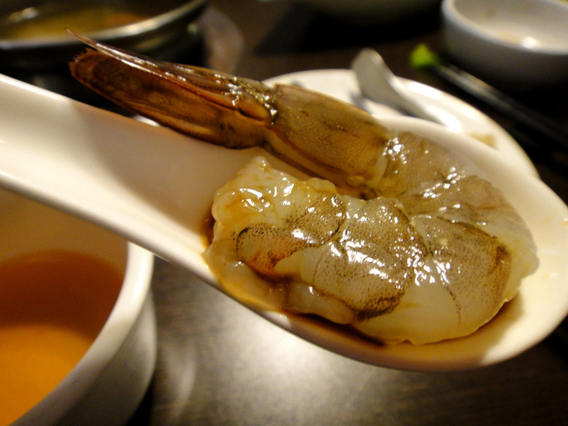 不同於外面的蝦子吃起來較軟嫩,沾了醬油的海水蝦吃起來有點黏黏的,就像吃軟絲的口感,且有甘甜味,這海水蝦也很讓人驚燕.