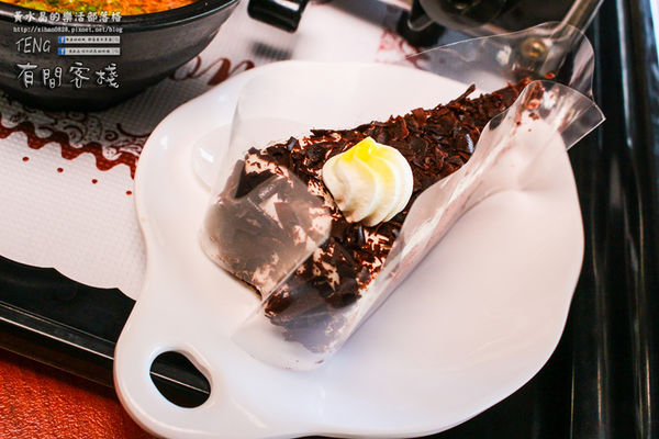 ↓吃飽後;這道餐點一樣是有一份巧克力蛋糕甜點唷!