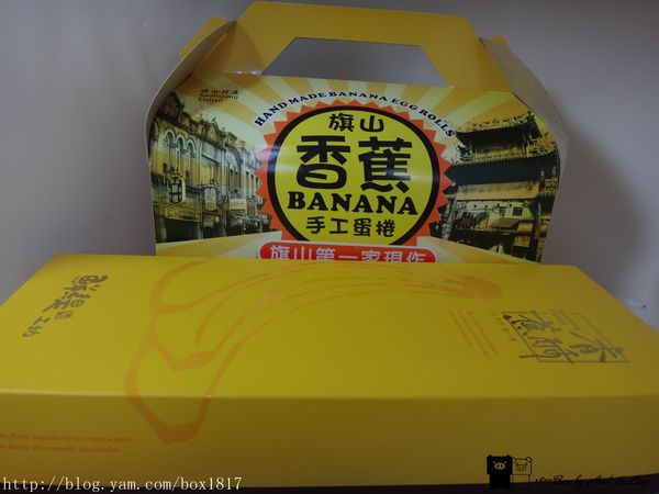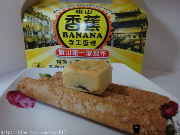 店家自行研發「香蕉手工蛋捲」,經過多次試驗累績,才使得「香蕉手工蛋捲」比例拿捏得恰到好處。「香蕉手工蛋捲」最大的特點在於蛋的添加比例高,蛋是一種天然的膨鬆劑,吃起來更膨鬆酥脆。每一根蛋捲都是現場新鮮製作,現封、現賣;所使用的香蕉是與旗山當地蕉農合作,香蕉蛋捲剛入口雖然香氣並不突出,而是在後面有一股淡淡的香蕉味回韻,由於無添加香料,並經過200度高溫烘烤,香氣並不明顯;新鮮香蕉裡的鐵質遇熱會自然呈現咖啡色,且手工蛋捲厚薄度不同,顏色深淺不一。「香蕉手工蛋捲」在2014年由高雄市政府經濟發展局評選為高雄特色商圈十大伴手禮,同年12月更受邀至桃園參加美食伴手禮展!