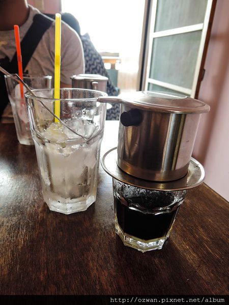 等咖啡滴完、攪拌後,再倒進另一杯裝了冰塊的玻璃杯裡,便是越南特有的煉乳咖啡。