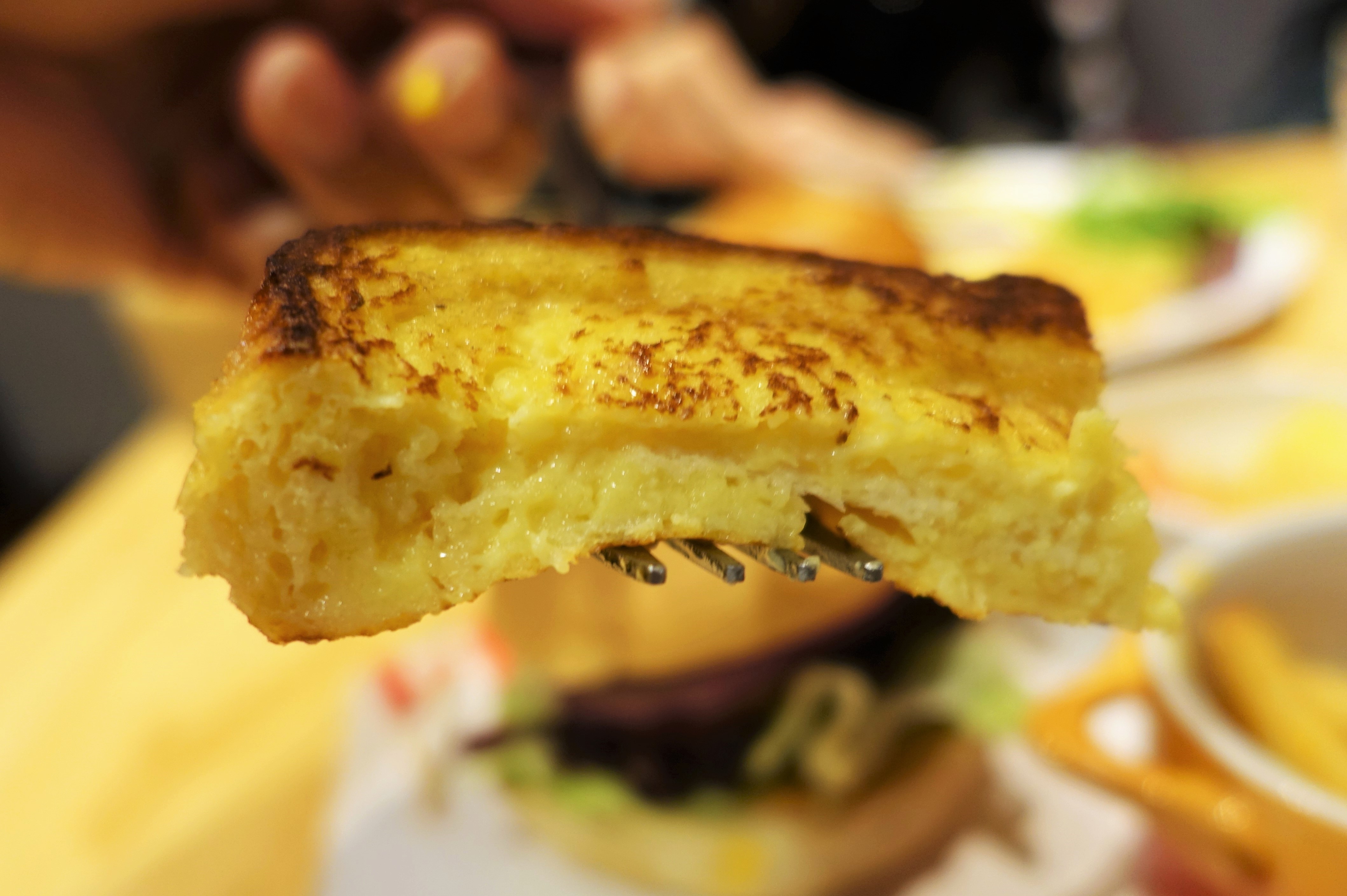 首先牛奶厚片的邊是軟的,所以整個厚片入口非常軟嫩,且牛奶風味濃厚與布丁般濕潤的口感,牛奶厚片得到我們三人一致的好評,非常好吃!!!