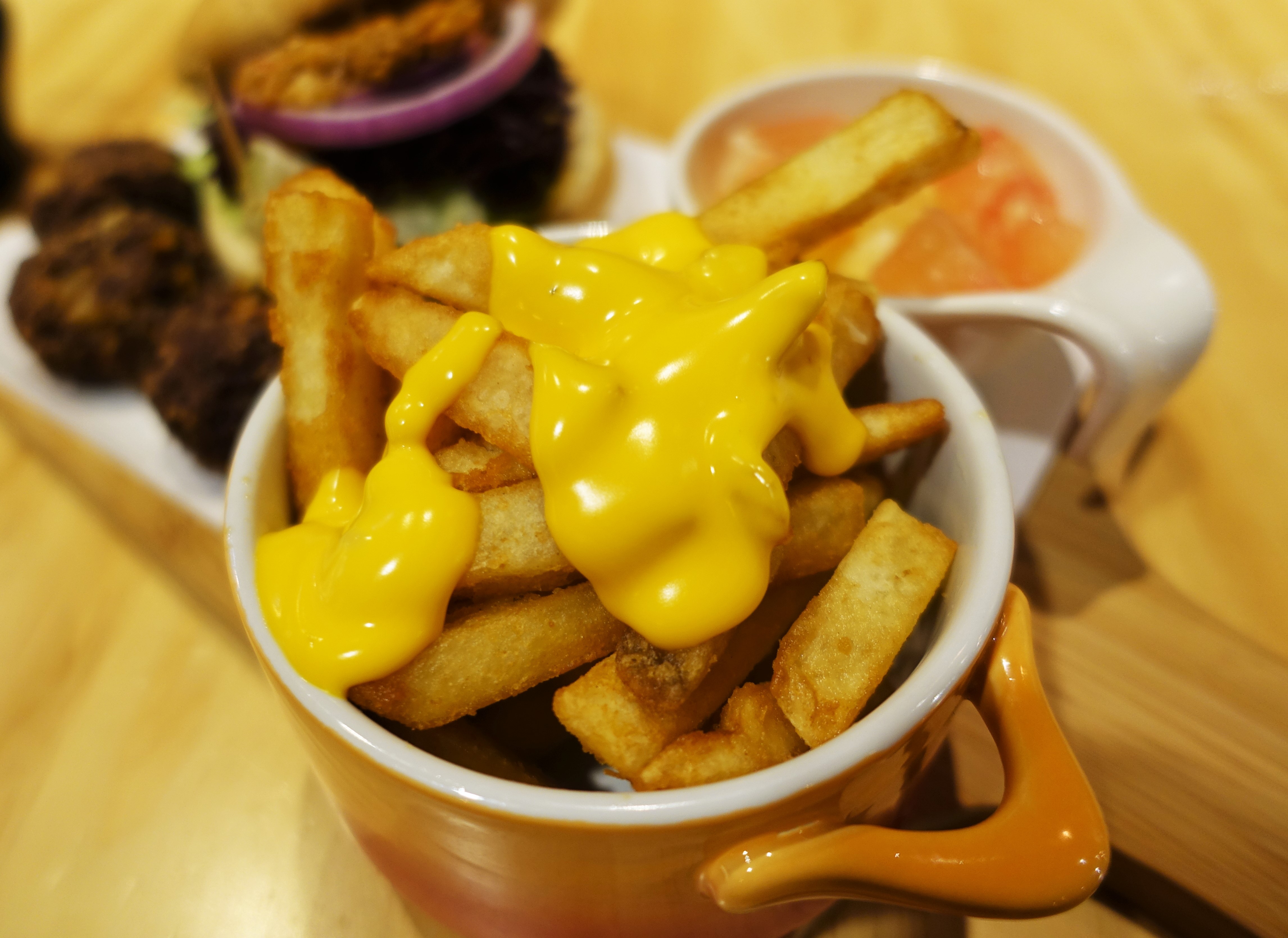 附餐薯條也會撒上起司,濃郁的起司配上馬鈴薯薯條,蠻好吃的。