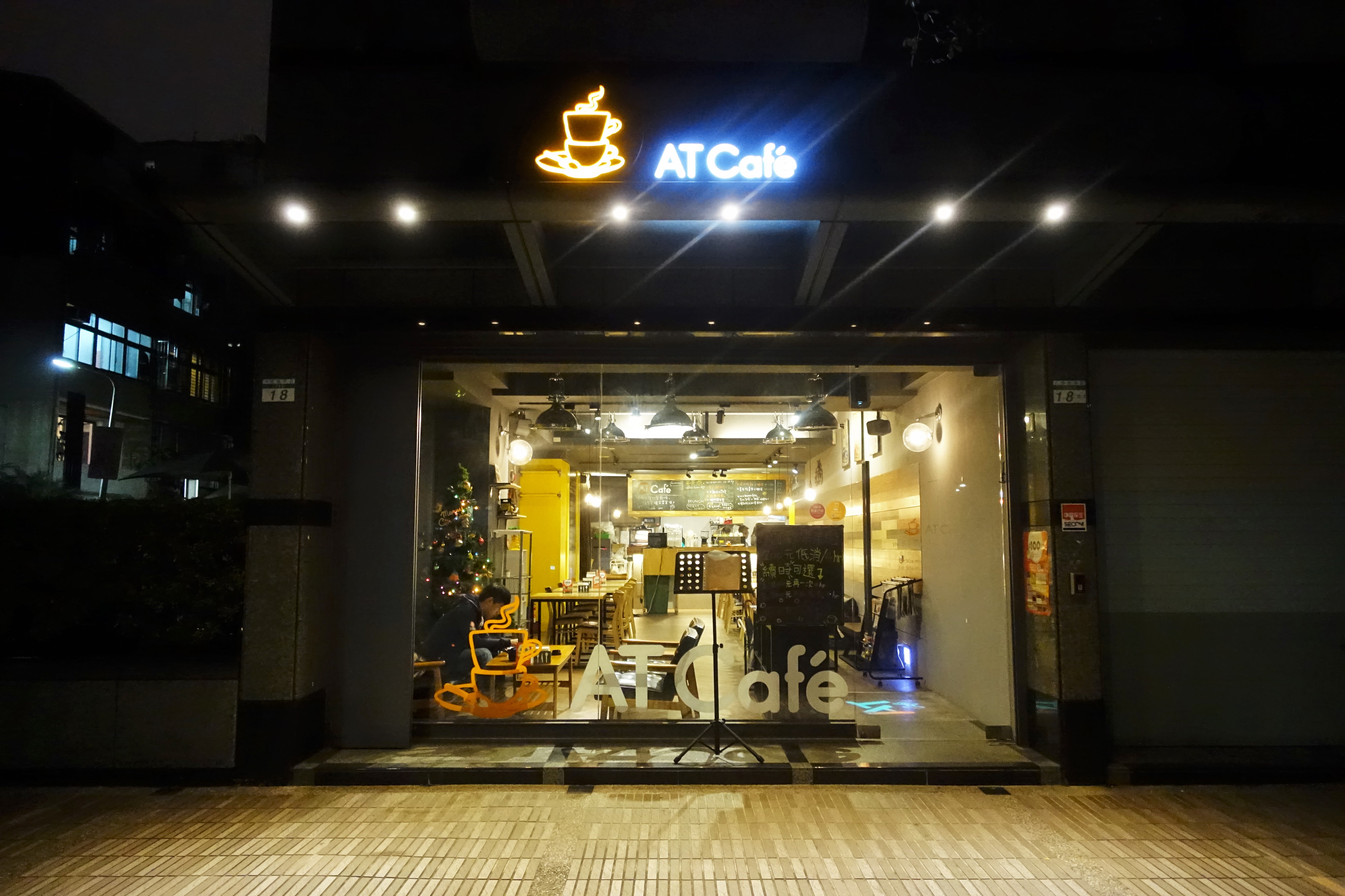 AT Café從外觀看起來相當明亮,尤其在夜晚特別顯眼。