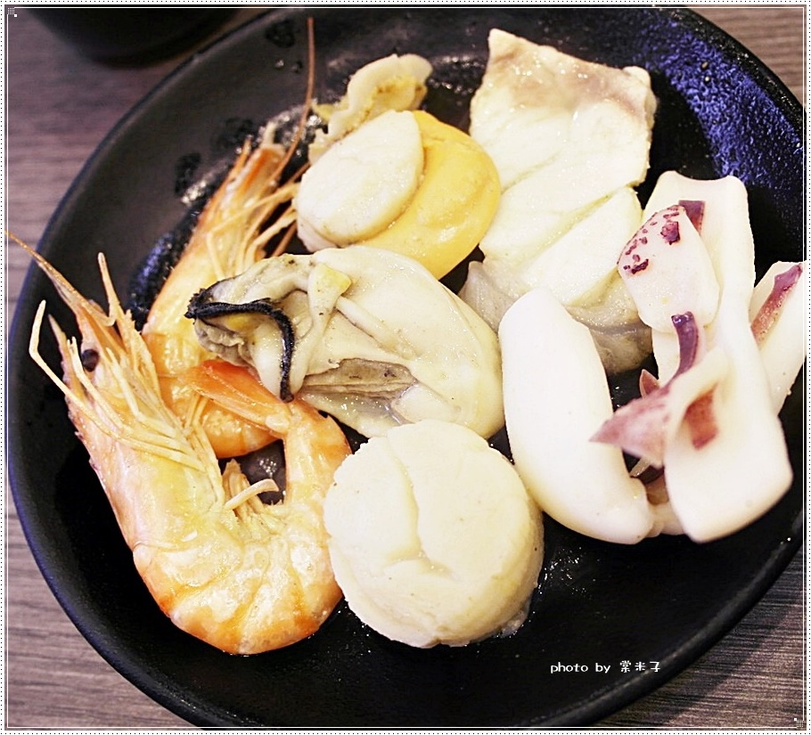 雖說是海鮮鍋菜盤但還附上了豬肉片了!!這是海陸鍋了吧!!