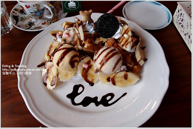 今天點了香蕉巧克力鬆餅和2杯飲料,鬆餅有含義大利冰淇淋2球,不加冰淇淋的話,便宜50元。