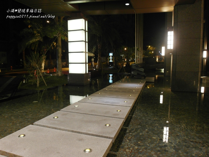 長榮鳳凰酒店(礁溪)以開闊的雙邊水池大門迎賓